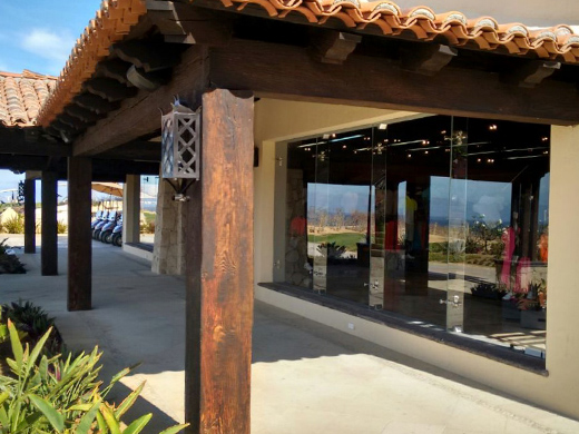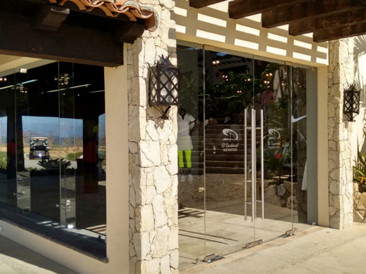 Instalación de ventanales con arañas de vidrio templado de 10mm en tienda Nike campo de golf